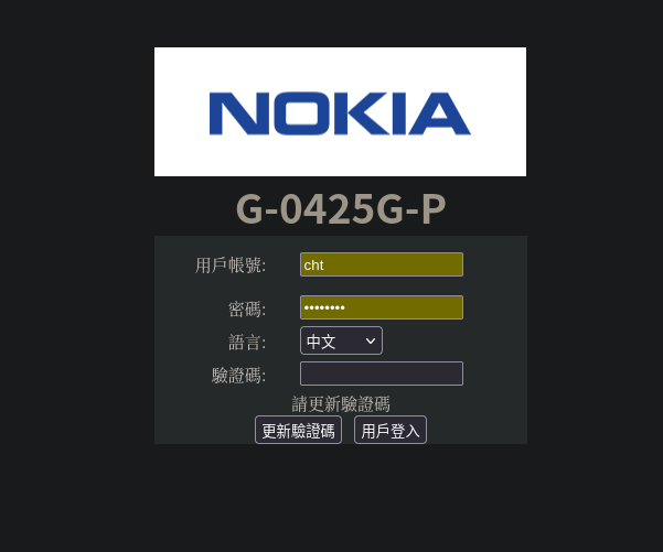 家裡換了光纖之後也換了一隻小烏龜,型號是NOKIA G-0425G-P